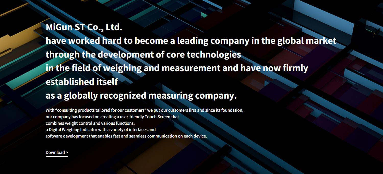 MiGun ST Co., Ltd. prides itself on technology strengthened via reliable products in the field of automatic weighing, measurement and automation for industrial use and know-how accumulated over time. We have worked hard to become a leading company in the global market through the development of core technologies in the field of weighing and measurement and have now firmly established ourselves as a globally recognized measuring company. With “consulting products tailored to our customers” We put our customers first and since its foundation We have focused on creating a user-friendly Touch Screen that combines weight control and various other functions. And creation of a Digital Weighing Indicator with a variety of interfaces And production of software that can be utilized more easily with fast and seamless communication on each device. In addition, we have developed and sold the Hopper Scale, Auto Checker, Packer and unmanned weighing systems, testing equipment, production management and mixed management systems and they are being widely used by many companies, public institutions as well as the global market. Please watch us as we become a leader in automatic weighing, measurement and automation for industrial use through technological development and commercialization that meets the needs of our customers while always considering the customer’s perspective. We ask for your continued interest and feedback. Thank you.